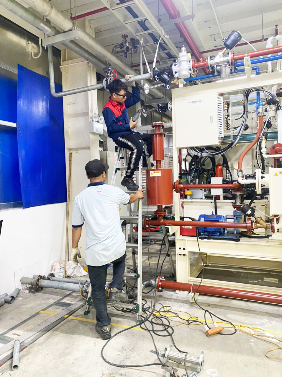Lắp đặt đường ống hơi máy đúc Denka